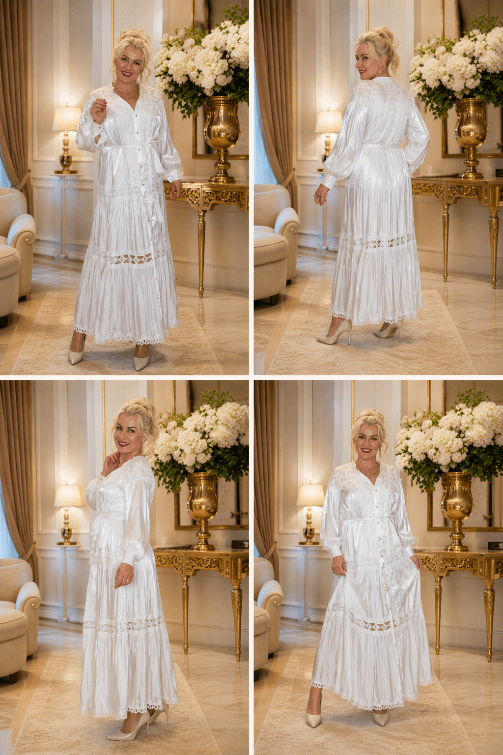 Elegancka biała sukienka midi to wyjątkowa propozycja dla kobiet, które cenią klasykę, wygodę i ponadczasowy styl. Model zachwyca subtelnym, haftowanym wzorem oraz starannie dopracowanymi detalami, które nadają całości luksusowego charakteru.