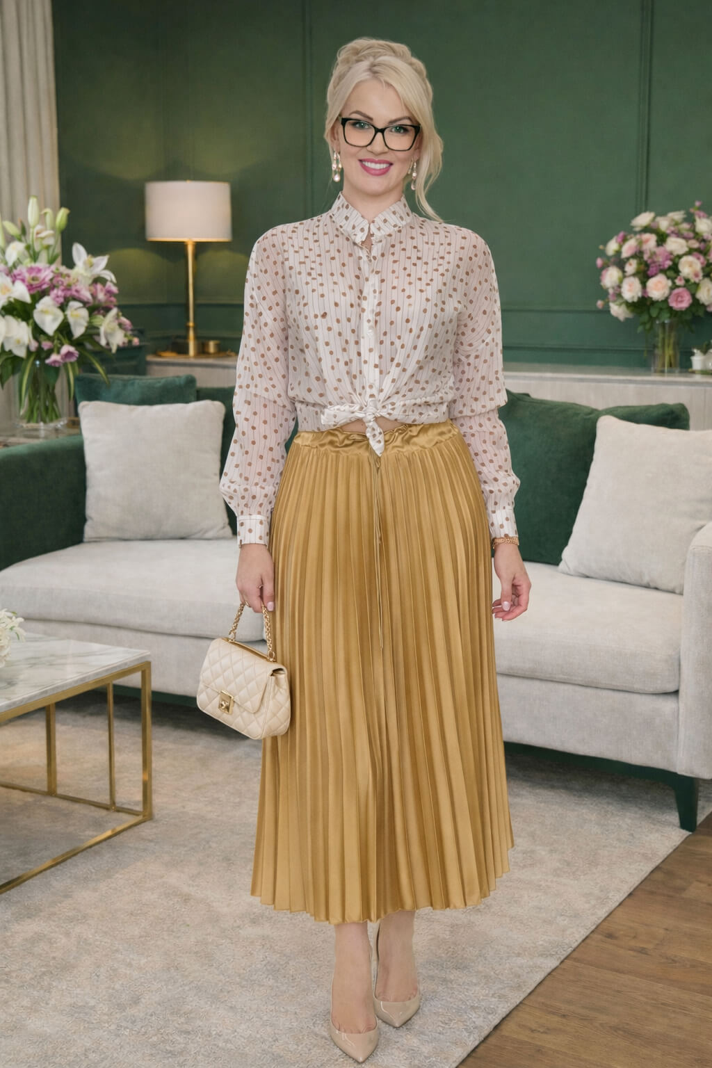 Śliczna, elegancka i ponadczasowa długa spódnica plisowana w modnym złotym odcieniu to idealny wybór dla kobiet, które cenią styl i wygodę. Model o długości maxi – sięgający za kostki – pięknie układa się w ruchu i wysmukla sylwetkę.