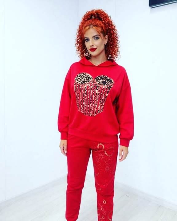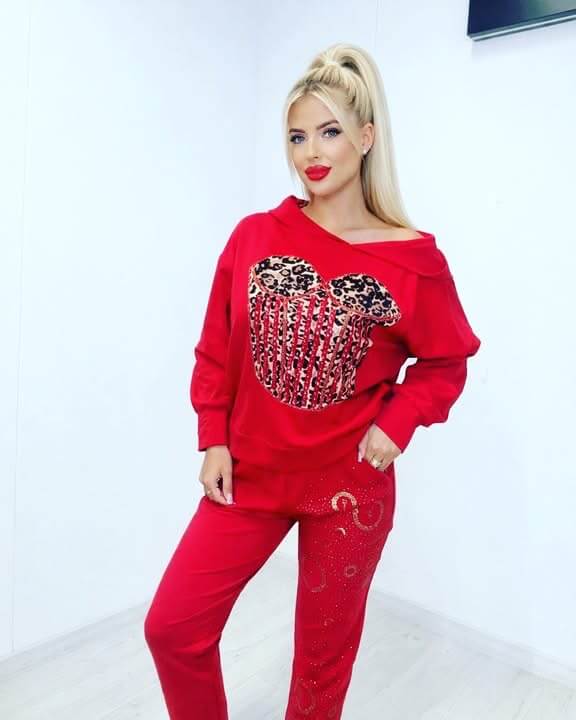 Stylowy i niezwykle komfortowy komplet dresowy wykonany z wysokogatunkowej bawełny, który łączy w sobie wygodę i elegancki wygląd. Model został efektownie ozdobiony cekinkami, które nadają całości wyjątkowego, luksusowego charakteru.