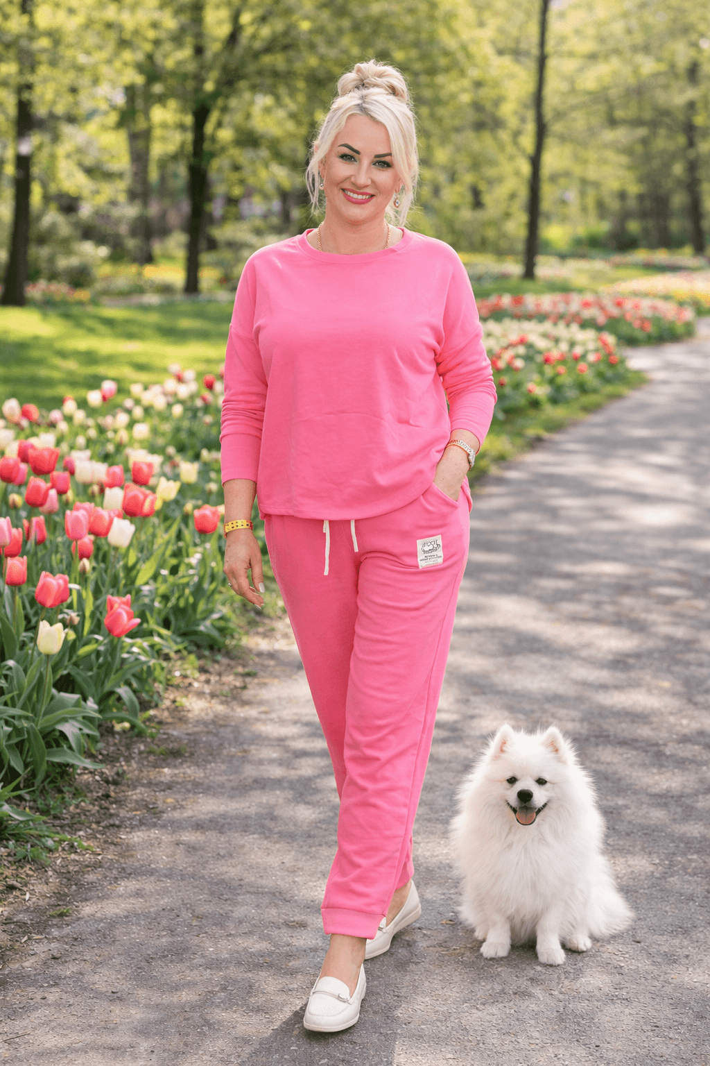 Modny i niezwykle wygodny komplet dresowy w pięknym, kobiecym różowym kolorze 💗 To idealne połączenie stylu i komfortu na co dzień.