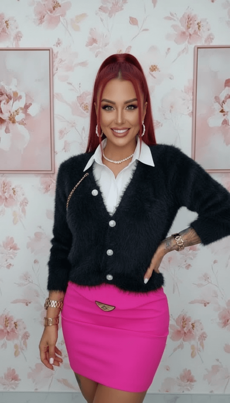Elegancki i wygodny sweter damski o klasycznym kroju, zapinany na guziki. Wykonany z miękkiego, elastycznego materiału, który dobrze dopasowuje się do sylwetki i zapewnia komfort noszenia przez cały dzień. Model idealnie sprawdzi się zarówno w stylizacjach codziennych, jak i bardziej eleganckich – do spódnicy lub spodni. Sweter przyjemny w dotyku, lekko elastyczny, nie krępuje ruchów.