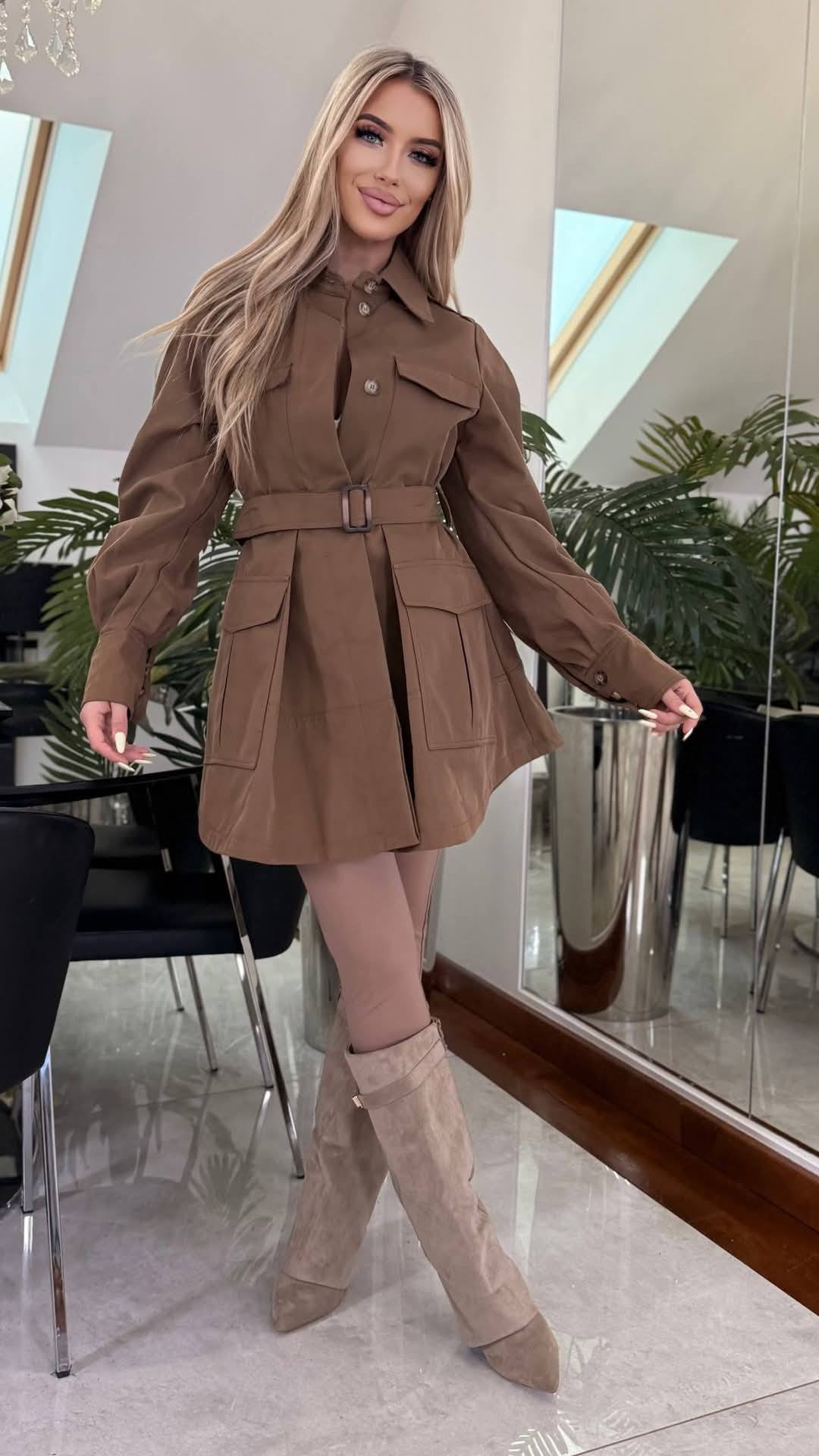 Rewelacyjny płaszcz z pagonami od Blu Royal o stylowym, kobiecym fasonie. Wykonany z wysokiej jakości materiału, posiada modne bufiaste rękawy, które dodają mu elegancji i charakteru. Idealny do codziennych i bardziej wyjściowych stylizacji. Rozmiar uniwersalny pasuje na S/M.