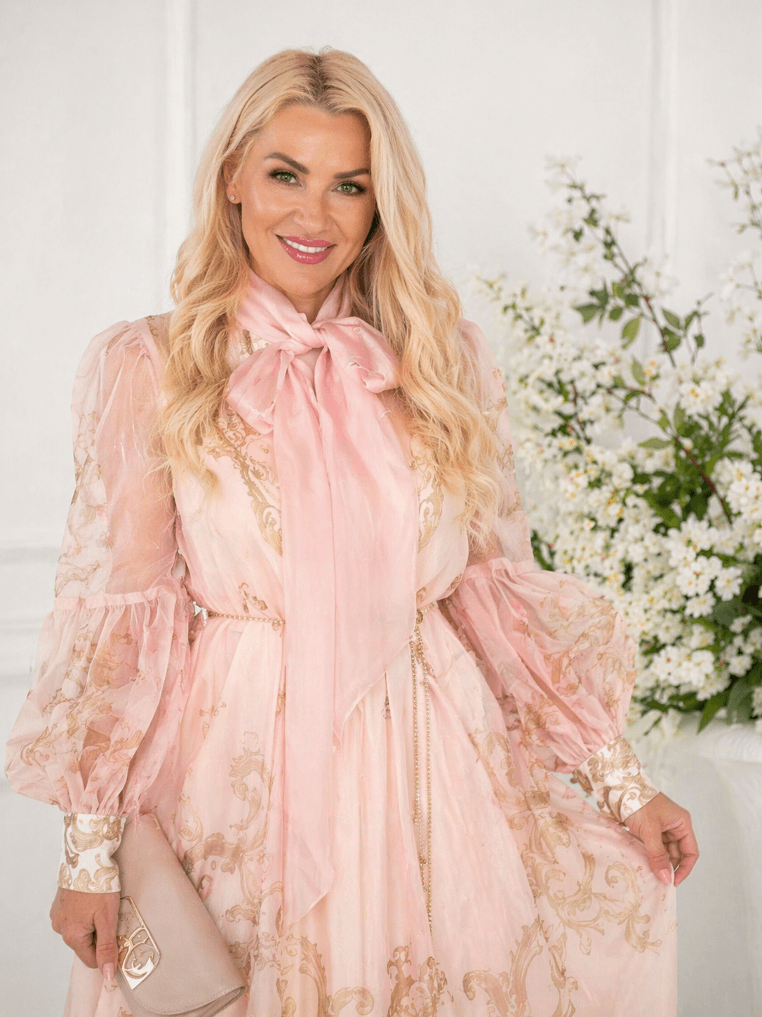 Poznaj wyjątkową sukienkę , która zachwyca subtelnym połączeniem beżu i pastelowych róż. To model stworzony dla kobiet, które chcą wyglądać elegancko, kobieco i czuć się komfortowo w każdej sytuacji. Delikatny, zwiewny materiał pięknie układa się na sylwetce, a romantyczny fason sprawia, że w tej sukience naprawdę można poczuć się jak królowa.