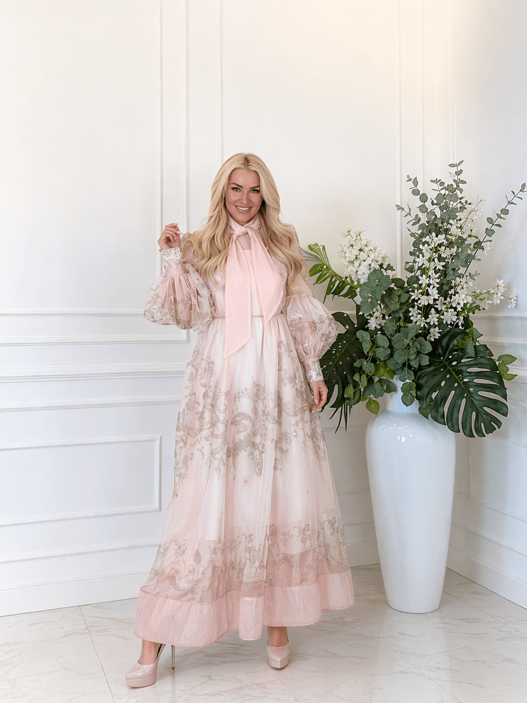 Długa sukienka pudrowy róż – wesele, komunia | wiosna lato