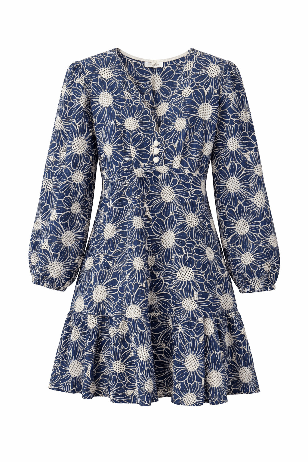 Stylowa sukienka haftowana wykonana z 100% bawełny. Posiada falbanę, regulowane rękawy i dekolt w serek. Wysoka jakość, produkcja Włochy