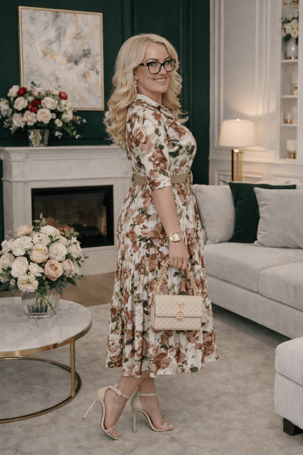 Modna sukienka wiskozowa lato 2026 to doskonała propozycja dla kobiet, które szukają lekkiej, przewiewnej i stylowej stylizacji na ciepłe dni. Ten model sukienki koszulowej w kwiaty został wykonany z wysokiej jakości materiału – aż 85% stanowi wiskoza, a 15% poliester, co gwarantuje komfort noszenia, oddychalność oraz piękne układanie się na sylwetce.