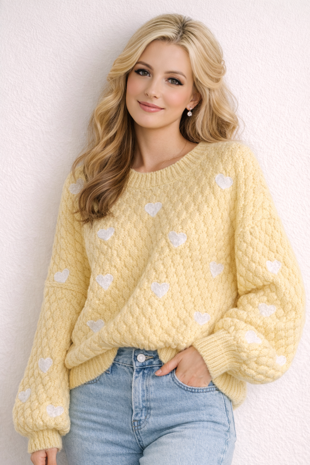 Delikatny, kobiecy sweter o luźnym kroju z obniżonym rękawem. Wykonany z przyjemnej w dotyku dzianiny (60% poliester, 40% wiskoza), zapewnia komfort noszenia na co dzień. Rozmiar uniwersalny
