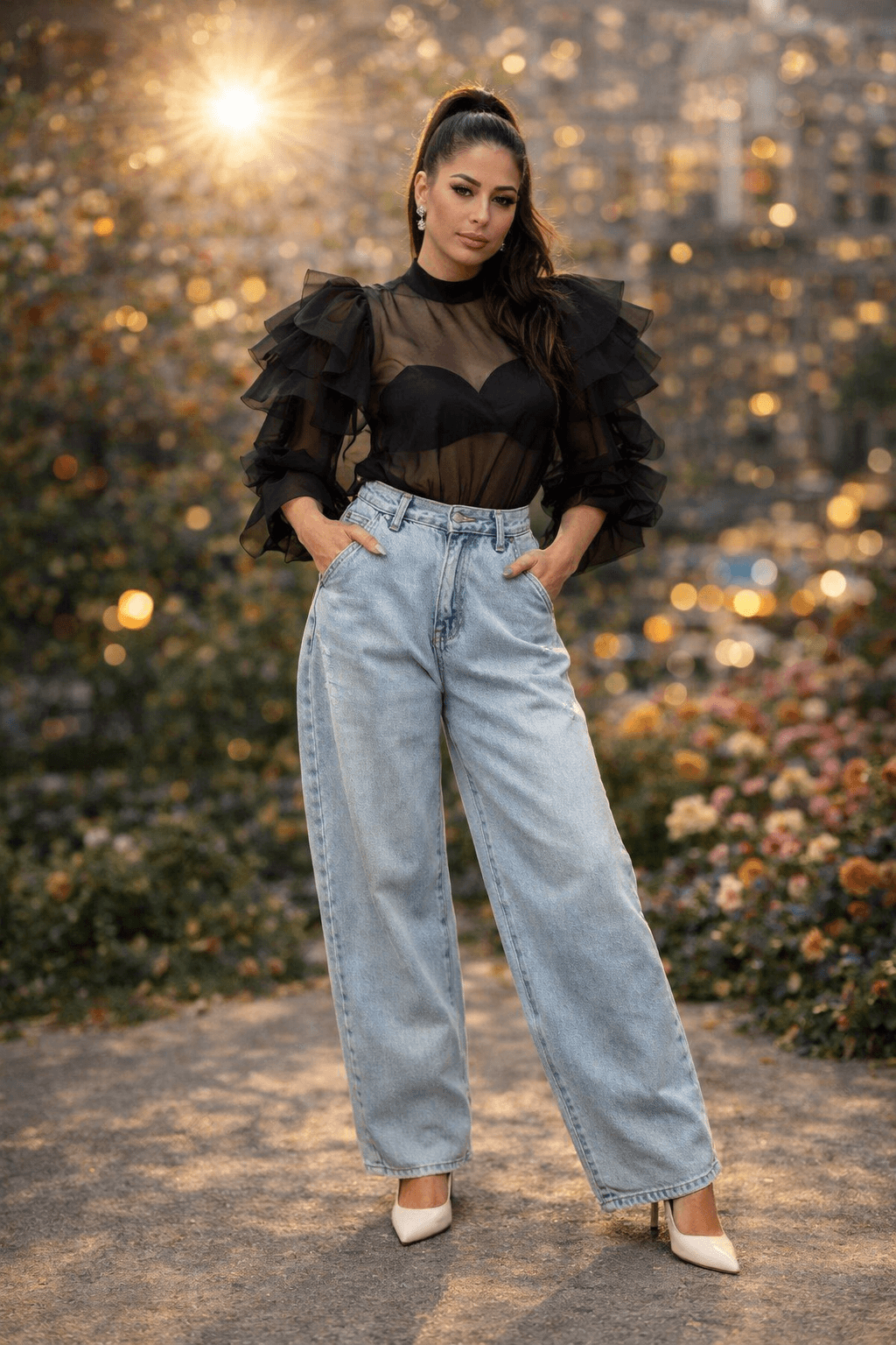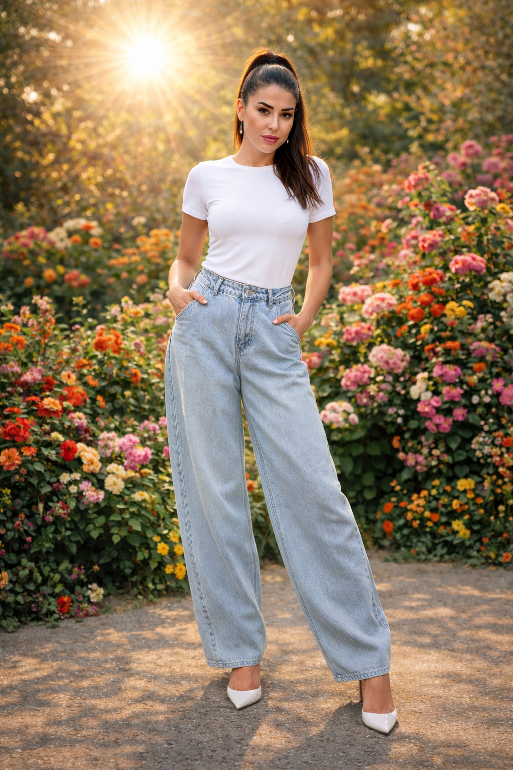 Odkryj idealne połączenie stylu i wygody! Te szerokie jeansy damskie typu baggy to must-have w każdej garderobie. Wykonane w 100% z wysokogatunkowej bawełny, gwarantują trwałość, przewiewność i komfort noszenia przez cały dzień.