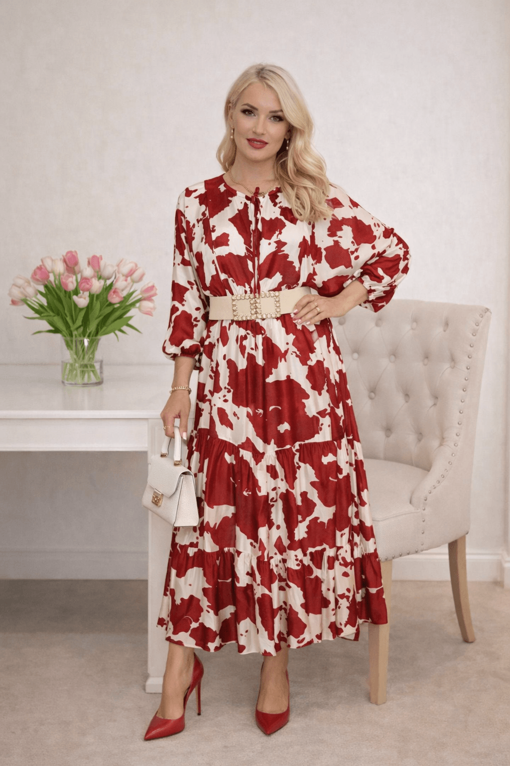 Sukienka świetnie wygląda zarówno noszona luźno, jak i przewiązana paskiem, co pozwala podkreślić talię i stworzyć bardziej dopasowaną stylizację. To uniwersalny model idealny na co dzień, spotkania, a także na wyjątkowe okazje.